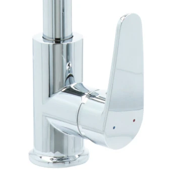 De Absolut keukenkraan Fasso met hendel Chroom is een blikvanger in je keuken met de hoge hoekige U-vormige uitloop. De strakke vormgeving en chromen afwerking passen perfect in jouw moderne keuken. De kraan kun je ook verkrijgen in zwart of grafiet. Met de kraan ga je ook in de tijd mee door de ingebouwde waterbespaarder in de sproeikop. Zo bespaar je op je waterverbruik. Dat is niet alleen goed voor het milieu, maar ook voor je portemonnee. De hoogte van maar liefst 48 cm in combinatie met de 360° draaibaarheid van de uitloop zorgen dat je veel ruimte in je gootsteen hebt. Handig als je een grote pan moet vullen! Met de eenhendelbediening meng je eenvoudig met 1 hand het water naar de gewenste temperatuur. De keramische schijven maken draaien soepel en nauwkeurig en vergen bovendien weinig onderhoud. Ook veeg je kalk eenvoudig met je vingers van de uitloop af doordat vuil en kalk zich niet makkelijk hecht aan de siliconen noppen in de sproeikop. Met de meegeleverde flexibele aansluitslangen en bevestigingsmateriaal sluit je deze kraan makkelijk zelf aan door het vereenvoudigde montagesysteem. Op de kraan krijg je 5 jaar garantie.