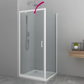 Het glas is omlijst met aluminium profielen, die je aan de muur monteert. De doorzichtige zwaaideur heeft een afmeting van 200 cm hoog en 90 cm breed en is linksdraaiend (de scharnieren zijn aan de linkerzijde geplaatst). De deur sluit je zacht met ingebouwde magneetjes in het frame.