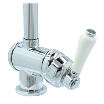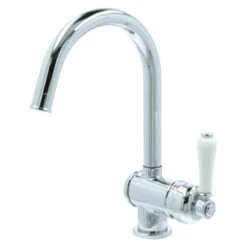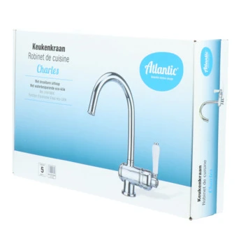 De Atlantic keukenkraan Charles met hendel Chroom bestaat uit een verchroomde keukenkraan van 31 cm met 2 flexibele aansluitslangen, bevestigingsmateriaal en montagehandleiding. De Charles keukenkraan heeft een draaibare uitloop van 360° waarmee je eenvoudig plaats maakt bij je gootsteen. Met de eenhendelbediening draai je met 1 hand de kraan naar de gewenste temperatuur. Je bespaart water door de ingebouwde eco-klik. De ingebouwde weerstand in de hendel zorgt ervoor dat je de kraan niet direct op de hoogste straalstand zet. Wens je toch een hardere straal, dan zet je de hendel gewoon verder open. Aan de anti-kalk perlator hecht kalk zich moeilijk vast en veeg je er makkelijk met de hand af. Deze retro vormgegeven keukenkraan heeft een mooie glanzende chromen afwerking en een klassieke handgreep. Gebruik alleen water en een zachte doek om de kraan schoon te maken. Gebruik geen schurend, bijtend, azijnhoudend of agressief schoonmaakmiddel. Op de kraan heb je 5 jaar garantie.