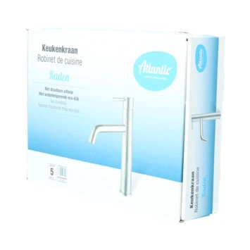 De Atlantic keukenkraan Kaden met hendel Chroom bestaat uit een keukenkraan met rechte hoge uitloop, 2 flexibele aansluitslangen, bevestigingsmateriaal en montagehandleiding. De Kaden keukenkraan heeft een draaibare uitloop van 360° waarmee je eenvoudig plaats maakt bij je gootsteen. Ook de hoge uitloop op 16 cm geeft ruimte. Handig als je bijvoorbeeld een grote pan of emmer wil vullen. Met de eenhendelbediening draai je met 1 hand de kraan naar de gewenste temperatuur. Draaien doe je soepel en nauwkeurig door de keramische schijven, die bovendien weinig onderhoud vergen. Je bespaart water door de ingebouwde eco-klik. Een ingebouwde weerstand in de hendel zorgt ervoor dat je de kraan niet direct op de hoogste straalstand zet. Daarmee bespaar je dus op je waterverbruik. Wens je toch een hardere straal, dan zet je de hendel wat verder open. Aan de anti-kalk perlator hecht kalk zich moeilijk vast en veeg je er met de hand af. Deze rechte keukenkraan met hoge uitloop heeft een glanzend chromen afwerking en past met de tijdloze vormgeving in ieder keukeninterieur. Gebruik alleen water en een zachte doek om de kraan schoon te maken. Gebruik geen schurend, bijtend, azijnhoudend of agressief schoonmaakmiddel. Op de kraan heb je 5 jaar garantie.