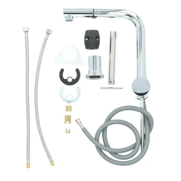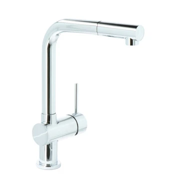 De Atlantic keukenkraan Stephen met hendel en uittrekbare sproeikop Chroom bestaat uit een chromen keukenkraan, 2 flexibele aansluitslangen, bevestigingsmateriaal, montage sleutel en montagehandleiding. De Stephen keukenkraan heeft een draaibare uitloop van 360° waarmee je eenvoudig plaats maakt bij je gootsteen. Ook de hoogte van maar liefst 31 cm geeft veel ruimte in de gootsteen. Handig als je bijvoorbeeld een grote pan of emmer wil vullen. En als je veel vaat hebt af te spoelen, trek je eenvoudig de sproeikop uit de kraan. Met de eenhendelbediening draai je met 1 hand de kraan naar de gewenste temperatuur. Draaien doe je soepel en nauwkeurig door de keramische schijven, die bovendien weinig onderhoud vergen. Je bespaart water door de ingebouwde eco-klik. De ingebouwde weerstand in de hendel zorgt ervoor dat je de kraan niet direct op de hoogste straalstand zet. Daarmee bespaar je dus op je waterverbruik. Goed voor het milieu en voor je portemonnee. Wens je toch een hardere straal, dan zet je de hendel wat verder open. Deze kraan heeft daarnaast ook nog ingebouwde keerkleppen die voorkomen dat vuil water terug de leiding instroomt. Aan de anti-kalk perlator hecht kalk zich moeilijk vast en veeg je er met de hand af. Deze rechte keukenkraan met hoge L-uitloop heeft een prachtig glanzende chromen afwerking en past met de strakke vormgeving in elk modern keukeninterieur. Gebruik alleen water en een zachte doek om de kraan schoon te maken. Gebruik geen schurend, bijtend, azijnhoudend of agressief schoonmaakmiddel. De kraan heeft het Belgaqua keurmerk en 5 jaar garantie.