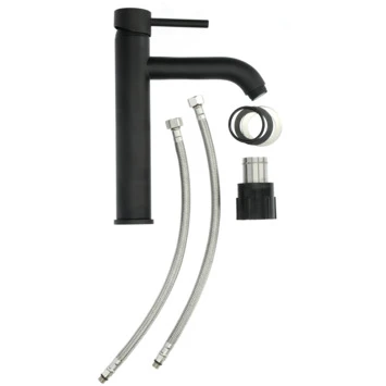 De Atlantic wastafelkraan Spencer met hendel Zwart bestaat uit een mat zwarte messing wastafelkraan van 25,5 cm hoog met 2 flexibele aansluitslangen, bevestigingsmateriaal en montagehandleiding. De Spencer wastafelkraan heeft een handige eenhendelbediening, waarmee je eenvoudig met 1 hand de kraan naar de gewenste temperatuur draait. Je bespaart water door de ingebouwde eco-klik. De ingebouwde weerstand in de hendel zorgt ervoor dat je de kraan niet direct op de hoogste straalstand zet. Wens je toch een hardere straal, dan zet je de hendel gewoon verder open. Eco start zorgt ervoor dat als de hendel in het midden staat, alleen koud water door de kraan stroomt. In tegenstelling tot standaard mengkranen waarbij warm water gemengd wordt in de middelste stand. Zo bespaar je naast water door eco-klik dus ook (warmte)energie door eco start. Aan de anti-kalk perlator hecht kalk zich moeilijk vast en veeg je er makkelijk met de hand af. Met de mat zwarte afwerking heeft deze wastafelkraan van messing een robuuste uitstraling. Gebruik alleen water en een zachte doek om de kraan schoon te maken. Gebruik geen schurend, bijtend, azijnhoudend of agressief schoonmaakmiddel. Besluit je deze kraan te kopen? Dan heb je 5 jaar garantie.