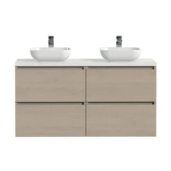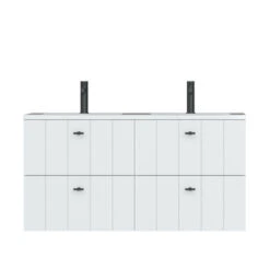 Tiger Maryport Badkamermeubelset 120 Cm Mat Wit Met Matzwarte Polybeton Wastafel En Matzwarte Grepen