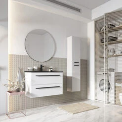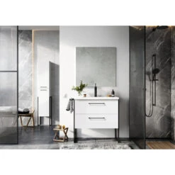 Atlantic Stella Badmeubelset Met Spiegel En Zwarte Wastafel 60cm Mat Zwart En Zwarte Grepen