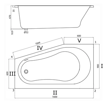 Sealskin Bad Optimo Compact Links Acryl 90x160x48 Cm