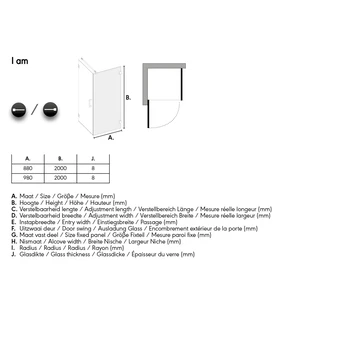Deze Sealskin Douchecabine met Swingdeur I AM 90x200cm Chroom heeft een verstelbaarheid buitenzijde glas van 880-880mm