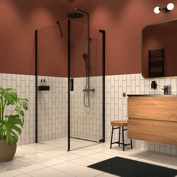 De douche is de eyecatcher van je badkamer! Juist daarom is het van belang dat je de juiste keuze maakt. Deze draaideur met zijwand in de kleur mat zwart geeft jouw badkamer een industriële uitstraling. Het profielarmontwerp maakt hem transparant en helemaal passend voor de moderne badkamer. De muurprofielen zijn daarnaast vlak afgewerkt, zodat ze makkelijk schoon te maken zijn. Uniek is de meegeleverde douchemand die je op iedere gewenste hoogte aan de zijwand monteert. Niet alleen een genot voor het oog, maar ook lekker praktisch!