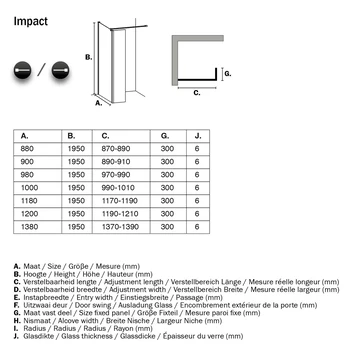 De Sealskin Inloopdouche Impact A1 118x30x195 cm Chroom heeft 8mm dik veiligheidsglas en oogt stijlvol. De ruimtelijke opzet wordt versterkt door de inkortbare steun die op 90 graden geplaatst wordt voor maximale stabiliteit. De douchewand is in een douchebak te plaatsen, maar kan ook direct op de vloer gemonteerd worden. Het veiligheidsglas zorgt voor een stevige wand en dankzij de antikalk laag is de douchewand eenvoudig schoon te maken. Deze inloopdouche kun je ook in de breedtematen 98, 118 en 138 cm in de GAMMA webshop kopen.