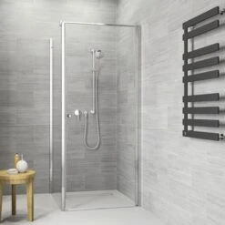 Met deze Sealskin Swingdeur creëer je een grote instap voor je douche zonder in te leveren op je bruikbare ruimte. De deuren openen namelijk naar binnen én naar buiten. In een iets compactere badkamer kun je de deuren dan altijd naar binnen openen. De glazen wand is gemaakt van 6mm dik veiligheidsglas. Je hoeft je dus geen zorgen te maken over barsten. Ook heeft de wand een antikalk coating waardoor het onderhoud zeer eenvoudig is. De pluggen, schroeven en handleiding worden meegeleverd. Je kunt deze Sealskin Swingdeur Code R 2-delig 120×197 cm dus eenvoudig zelf monteren. Deze swingdeur is een rechts te monteren model. Wil je de deur aan de linkerkant monteren dan kun je de Sealskin Swingdeur Code L 2-delig 120×197 cm in de GAMMA webshop kopen. Met de standaard 5 jaar garantie weet je dat je kwaliteit in huis haalt. Weet je toch niet zeker of dit HET product voor je is? Kijk dan gerust verder binnen de Sealskin serie. GAMMA heeft namelijk enorm veel variatie in afmetingen en vormen op gebied van douchewanden. Daar zit zeker iets voor je tussen!