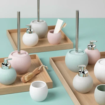 De Sealskin Toiletborstel met houder Convex Licht Aqua is gemaakt uit keramiek. De afwerking van deze wc-borstelhouder is een lichtaqua pasteltint en heeft een reliëf in de vorm van verticale gebogen lijnen. De houder is geschikt om op de grond te plaatsen en biedt ruimte voor 1 wc-borstel. Deze Scandinavische trend past in elke badkamer. Vervolledig deze Convex serie van Sealskin met de bijhorende beker en zeepdispenser. Je vindt deze sanitaire accessoires ook in andere pasteltinten, nl. lichtroze en lichtgrijs.