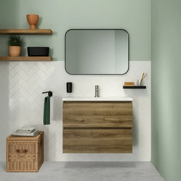 Atlantic Stella Badmeubelset Met Spiegel En Zwarte Wastafel 80cm Mat Zwart Met Zwarte Grepen