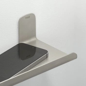 De Tiger Planchet Colar RVS 18 cm is uitgevoerd in geborsteld rvs en heeft een breedte van 18 cm. Met dit planchet is eenvoudig extra ruimte te creëren voor het opbergen van bijvoorbeeld cosmetica, sieraden of een mobiele telefoon. Het artikel is voorzien van een krachtige dubbelzijdige tape waardoor montage op iedere gladde, stevige ondergrond mogelijk is. De Colar serie bevat tevens een planchet in 30 cm breedte, maar ook een groot aantal aanvullende accessoires voor de badkamer en toiletruimte in dezelfde stijl. Alle artikelen uit de Colar serie zijn ook verkrijgbaar in rvs gepolijst (glans).